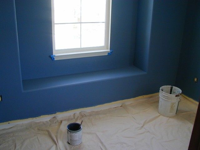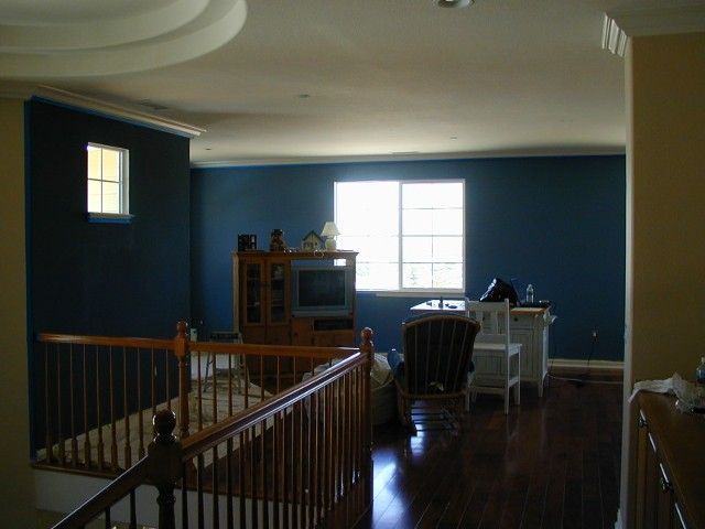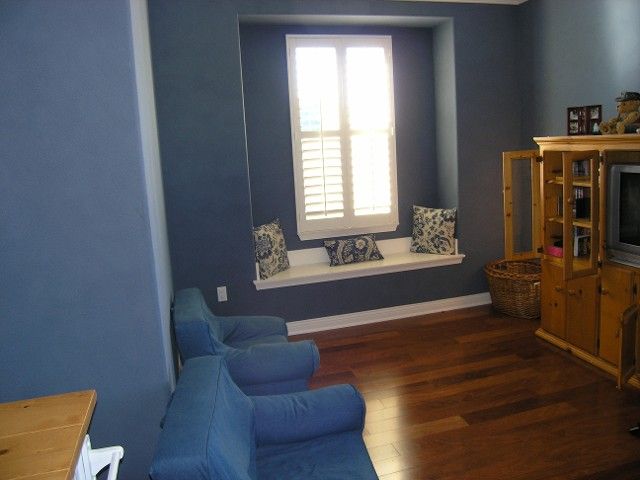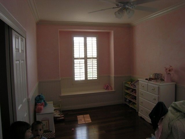 Bonus room in need of some "POP", receives new paint, new crown moldings installed, new base moldings, built-in window seat treatment, Ralph Lauren Suede finish and wood flooring.